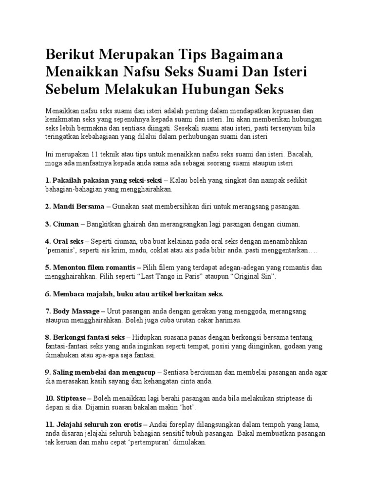 Tips Bagaimana Menaikkan Nafsu Seks Suami Dan Isteri Sebelum Melakukan Hubungan Seks Pdf